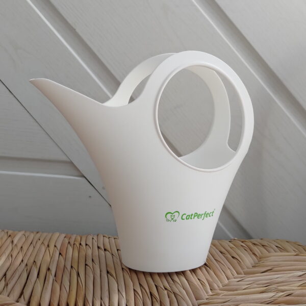 Formschöne kleine Gießkanne, ideal zur Pflege unseres Katzengras-Angebots.